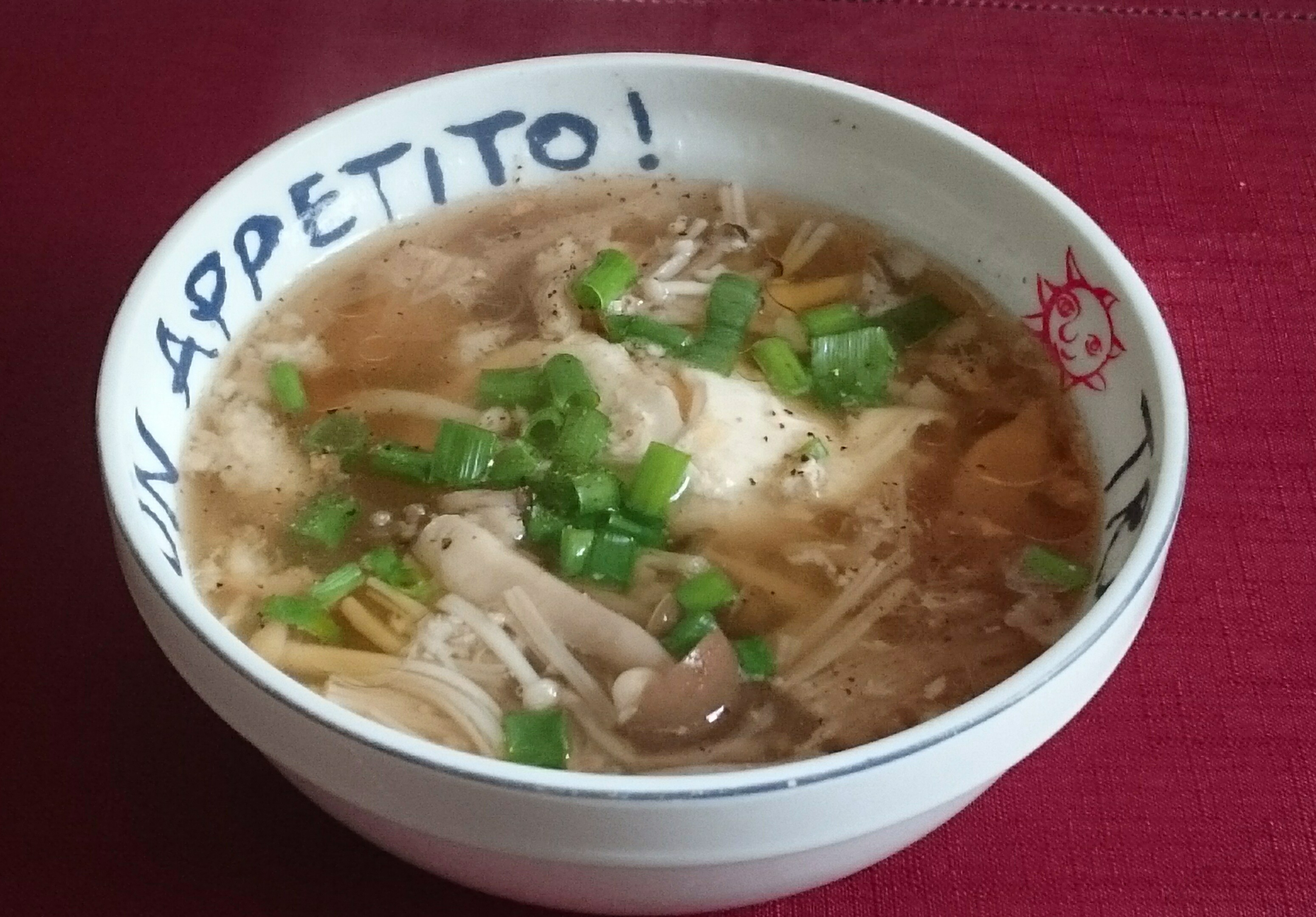 この前の鍋ものと似てるけど…(°▽°;)きのこと山芋スープ。ごはんを入れて雑炊にしてもいいかな?晩ごはんが遅くなったときの夜食にもオススメです。