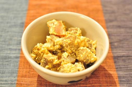 このカレー白和えは和食のお供にしてみましたが、適度にスパイスが効いておいしく頂きました♪