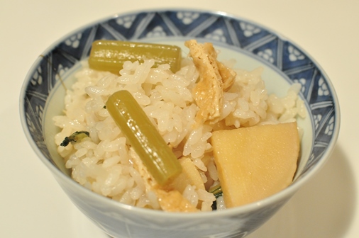 それと、ふきを買ってたけのこごはん。あぶらげを入れるのを忘れてしまったので、甘辛く煮て炊きあがったご飯に混ぜてしまいました(^_^;)。なんとか、まにあった。。。こういう失敗、いつもあるんです。仕事でも怒られる訳ですね(^_^;)。最近は怒られ慣れて、なんとも思わなくなったくらい(笑)。
