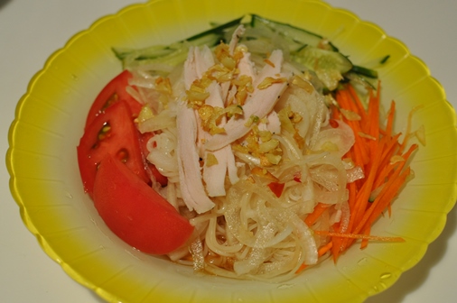 今日の麺は、スーパーで見つけたこんにゃくそうめんというもので、カロリー少なめ。あっさりしてるから食べた感がほとんどありません(^_^;)。炭水化物を抜くダイエットがはやっているから、ずいぶんと売れているみたいです。私はダイエットはしてないのですが、ご飯の後にお菓子とかせんべいを食べてしまって……あと最近は暑いから、ビールとかもついつい飲んでしまう……こんにゃくラーメン食べるくらいならお菓子をやめなさいっっ!って自分で自分に言っています(^_^;)。