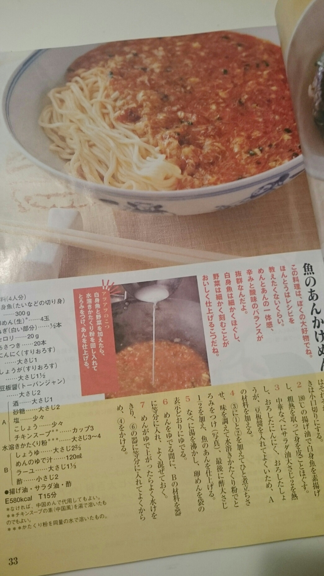 「きょうの料理」に載っていたレシピです。ねぎ、にんにく、生姜、セロリのみじん切りと豆板醤と一緒にを炒め、がらスープ(+塩コショウ)を入れてひと煮立ちさせます。そのあと、焼いてから細かくほぐした白身魚を加えて、酢を入れ片栗粉でとろみをつけたら出来上がり。ラーメンは、しょうゆ、茹で汁少々とラー油で和えてから器に盛り、とろみソースを上から掛けて頂きます。