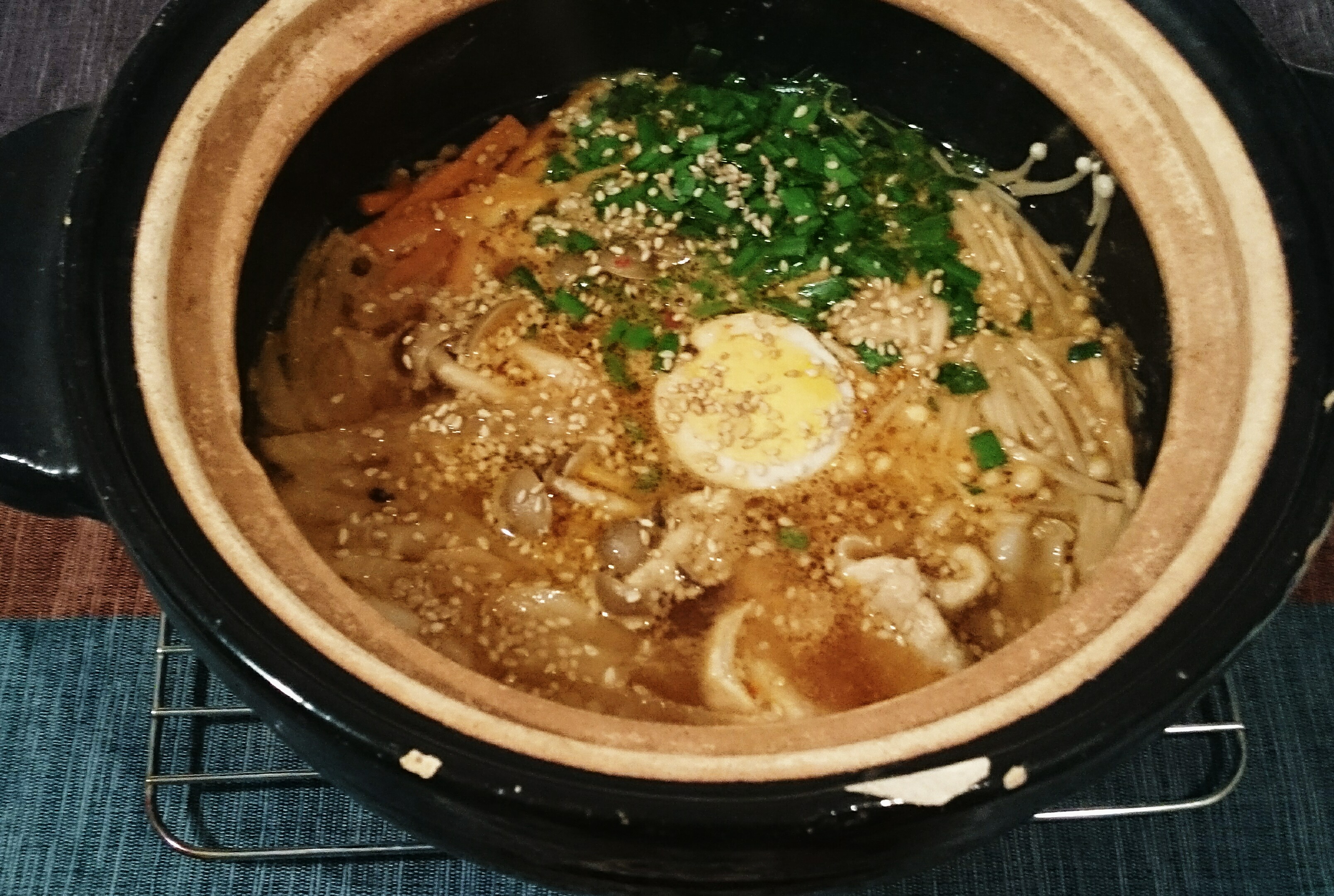 これはananの鍋特集に載っていたのですが、作り方をだいぶ変えてしまいました(汗)。本当は甜麺醤を使うんですが、スープが甘くなってしまったので今回は豆板醤(°▽°)