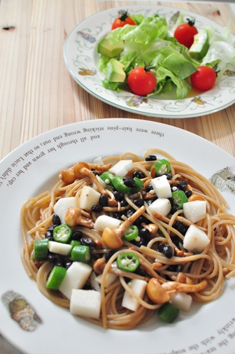 こちらは納豆とえのきのパスタです。