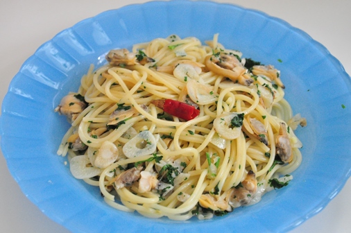 お昼に、あさりのスパゲッティを作りました。