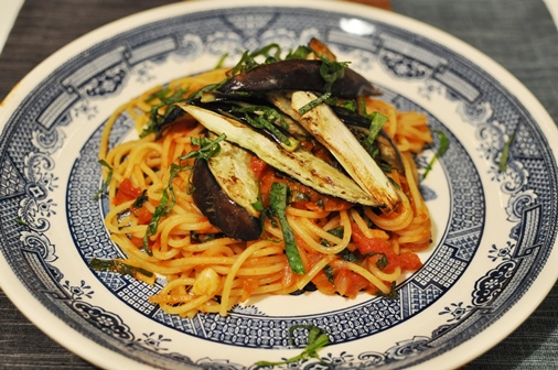 イタリアはシチリア島の郷土料理なのだそうですが、なすとトマトのパスタは