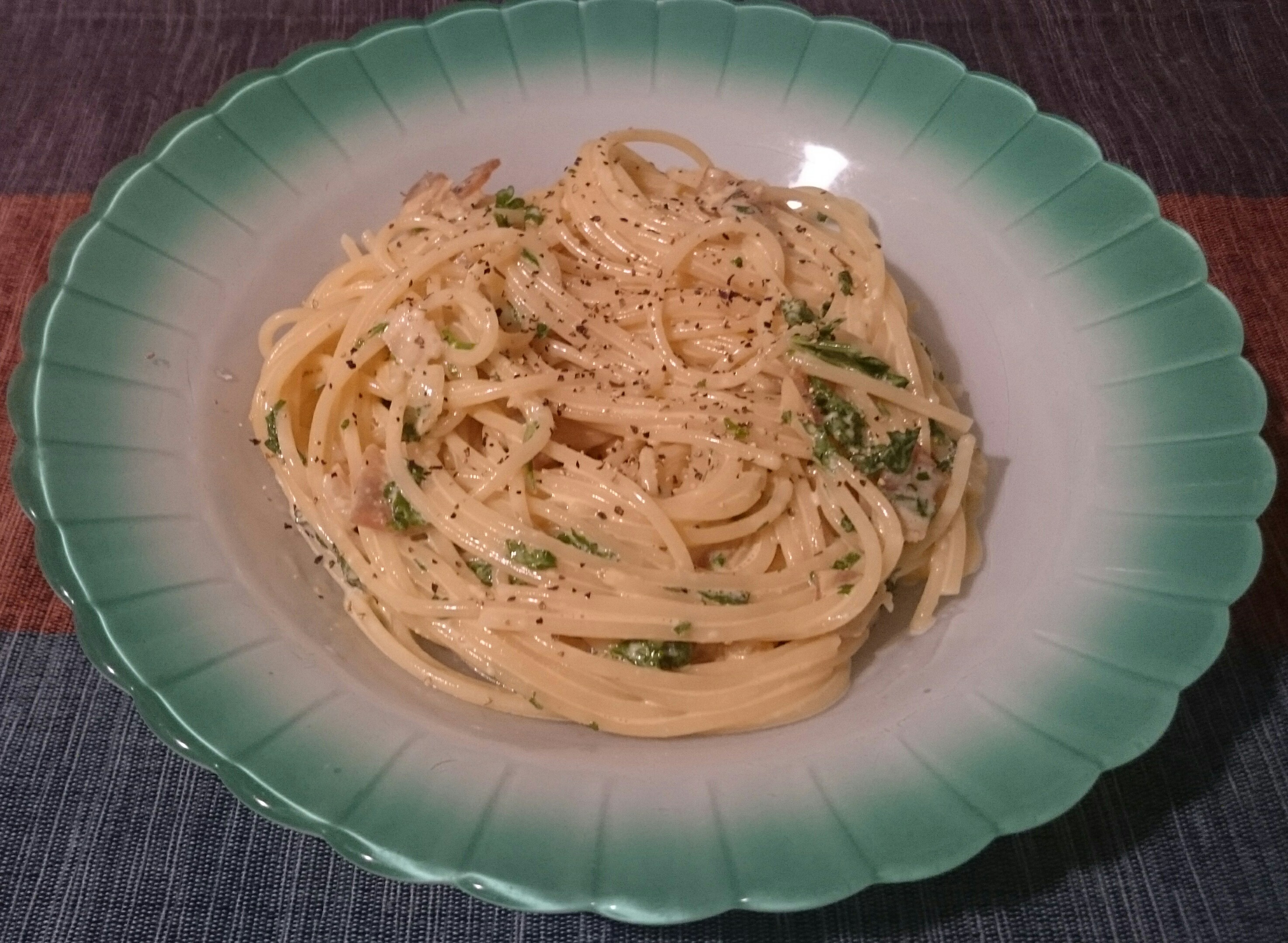 たまに食べたくなる、こってりパスタ(°▽°)♪最近お菓子を作らなくなってしまったので、生クリームを久しぶりに買いました。ソースが濃いと、パスタは少しでも食べ応えがあるからかえって良いかも?ペペロンチーノとかにする方がついたくさん盛ってしまって(^_^;)。