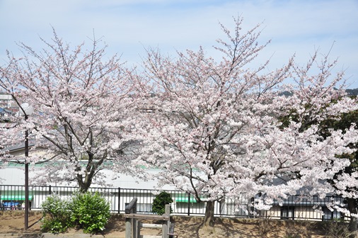 これは、家の近くの公園で咲いている桜です。この辺りではお散歩中の犬に出会うことが多いのですが、みんな喜んで桜の木の下に走って行きます(^○^)
