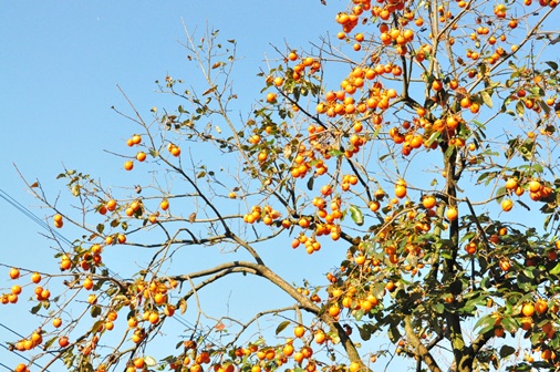 いつも通る道にある、柿の木です。毎年、こんなにたくさんの実をつけるのです。ここの家の人は、食べてるのかな?これ全部、干し柿にできたらいいなあ。私は干し柿がとても好きなのですが、高いからあまり買えない。でも、田舎の祖母に言わせると、あんなものは家で作るものだから、買うなんてありえない!って…。田舎の食事ってとても贅沢なんですね。