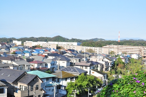 いつも、彼に送ってもらう坂道から撮影しました。ここからは、冬になると富士山も見えるんですが、今日はちょっと霞んでます(^^;)。ギリシャのアクロポリスの丘って、こんな感じかな?(似ても似つかない!)夜になると、ちょっとした夜景を見ることができます。100万ドルの夜景とはいかないけど…(^^;)