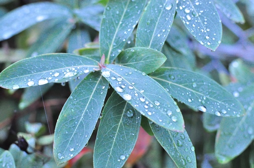 キラキラ光るもの、私も見つけました。葉っぱの上に、水玉がたくさん。