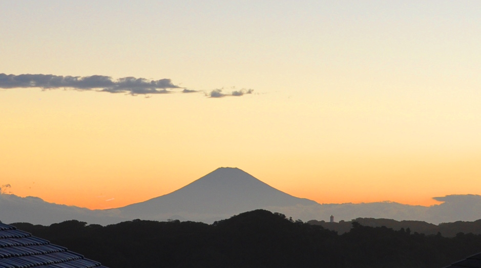 夕焼けの中にとても綺麗な富士山が浮かんでいました。本当はもっと広い範囲の空を撮りたかったんですが、電線とか民家の屋根が入ってしまって……(^_^;)