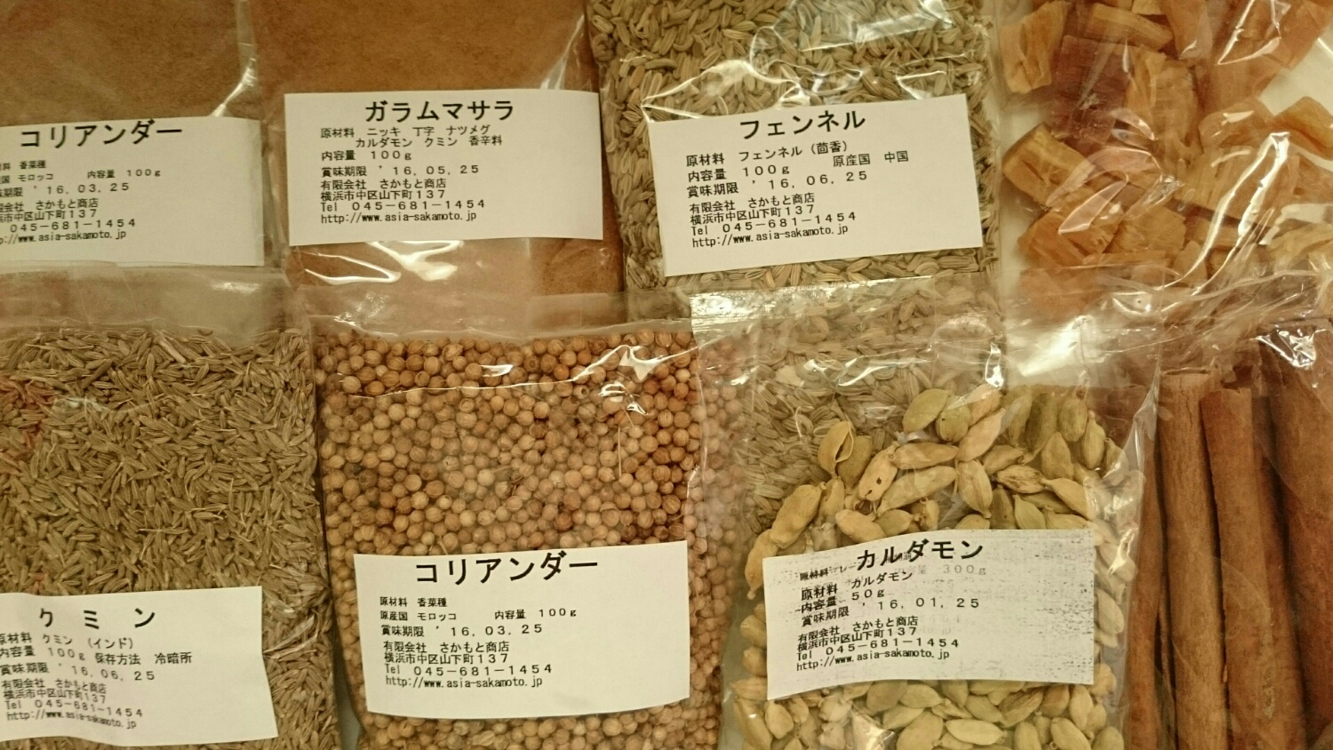 唐辛子は入れますが、他にもスパイスをたくさん使います(^o^)。7月に中華街へ行ったときに、お茶の葉や乾物などを売っている市場通りを歩いたのですが、ここで良いものを色々頂いてきました。