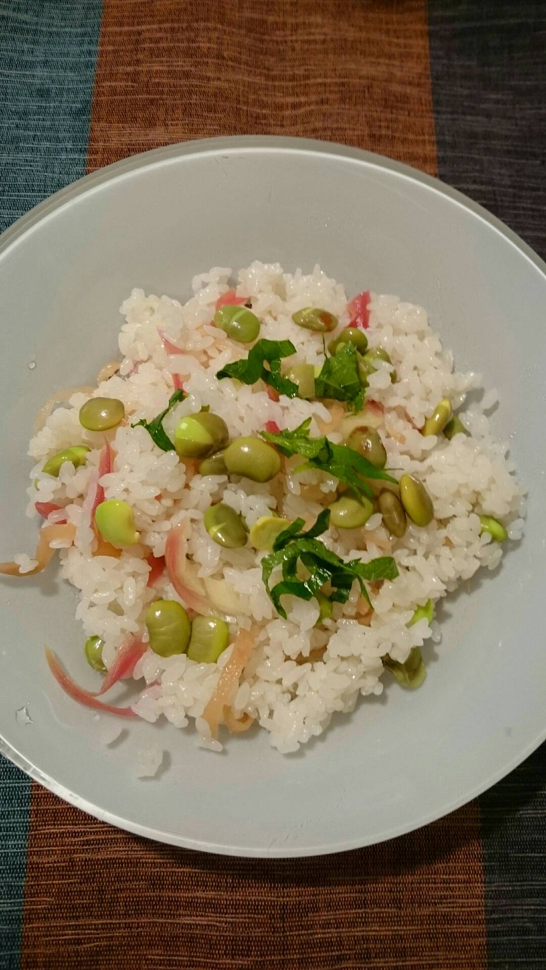 だだちゃ豆と枝豆って何が違うのだろう……?これを茹でて、酢飯に散らしていただきます!即席で茗荷の甘酢漬けも作り、色よく混ぜる(^o^)。食べる直前にキュウリの塩揉みを入れてなかったことに気がついたんですけど、豆があるからなくて良かったかな?お刺身が好きな方は上に乗っけて召し上がれ(^o^)/マグロ、スモークサーモンとかが美味しそう!