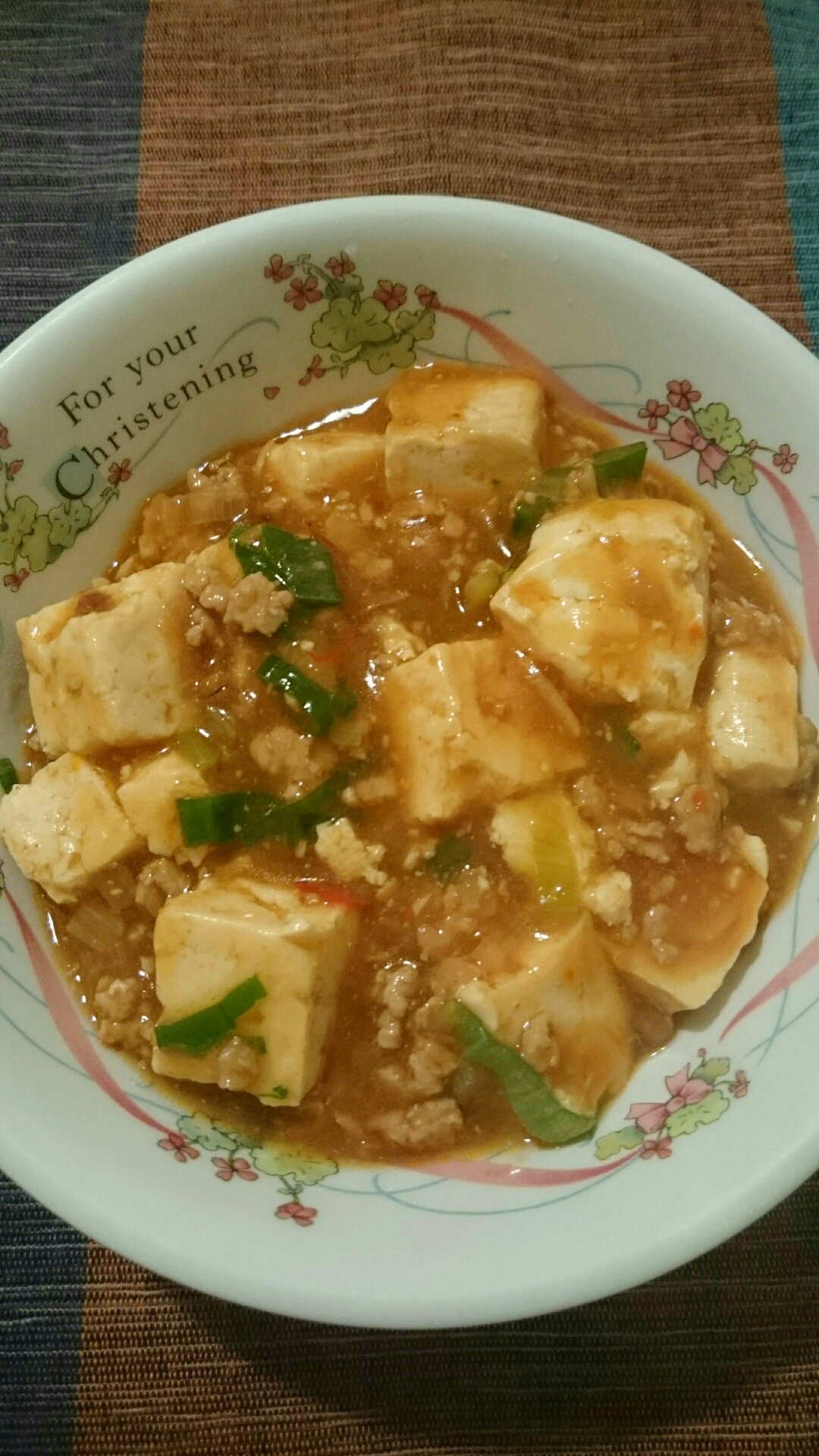 最後に、味噌、酒、塩、醤油などを混ぜて豆腐と一緒に数分温めます。片栗粉でとろみをつけたら出来上がり(^o^)/味は、ちょっと薄かったけど美味しかったです。