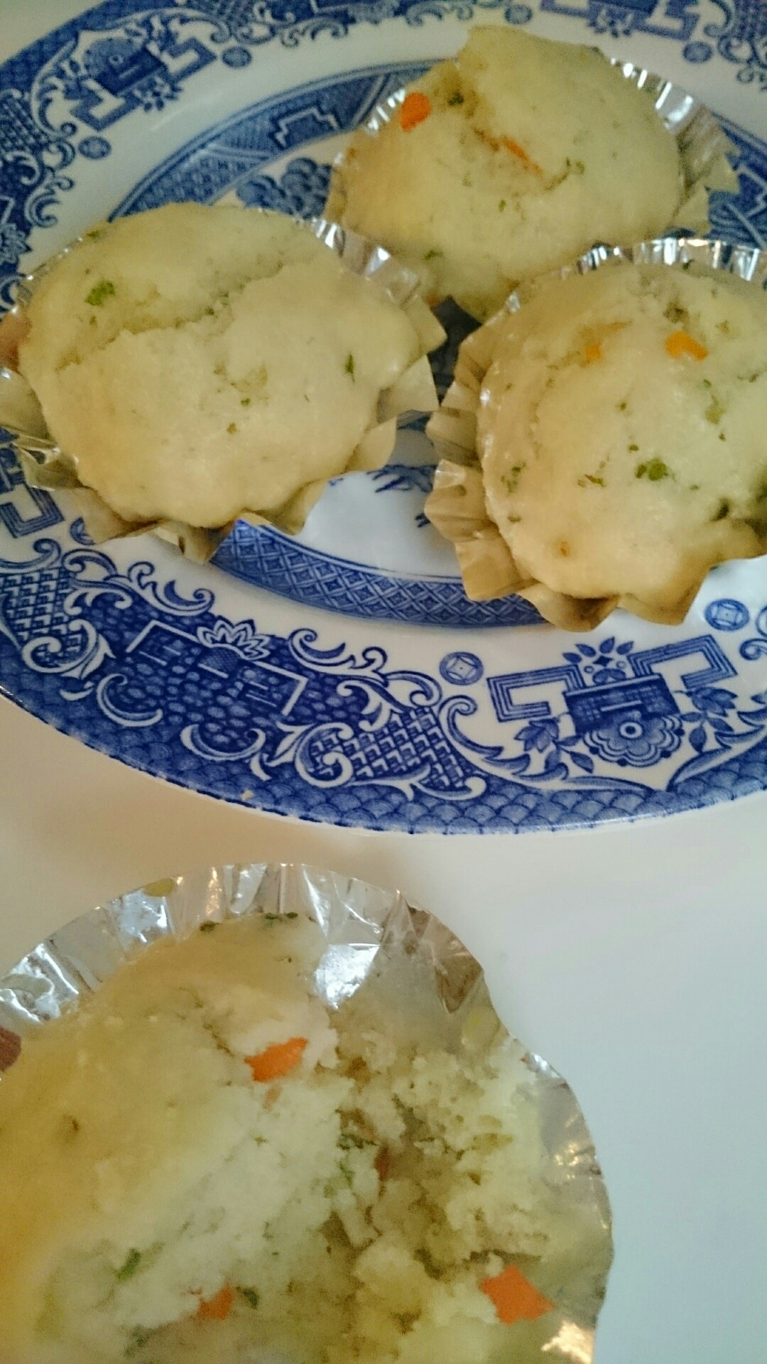 「戦下のレシピ」に載っていた「興亜パン」。戦争中、節米運動の一環で奨励されていたものです。これは「毎月1日の興亜奉公日に食べるパン」という意味で、戦場の苦労を偲んで米を食べず質素に暮らす日なのだそうです(|| ゜Д゜)。「メリケン粉に大豆粉や海藻粉、魚粉 に野菜を混ぜた蒸しパンです。」とあるのですが、大豆粉と海藻粉がなかったので代わりにコーンミール、砂糖は貴重品だったのでレシピの1/4に減らして作りました。ポイントは魚粉ですが、当時はこれが臭くて食べれたものではなかったらしい。肥料売場に行けば手に入りますが……勇気がなくて入れられませんでした……すみません(-_-)。このパンは栄養価のみ考えて作られたレシピなので、素材の相性とか二の次なんですね。本の中では「かなり面妖な蒸しパンである。人間用の配合飼料という印象」とコメントされています。