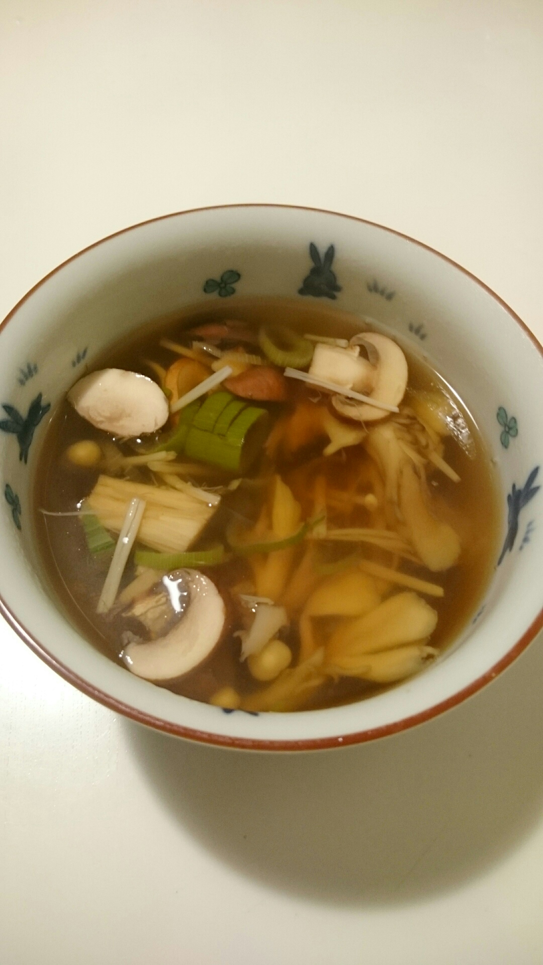 酒、しょうゆで味付けし、最後に片栗粉でとろみをつけて出来上がり。この季節は空気が乾いてくるので温かいスープが体に染みます… …(  ̄▽ ̄)。材料の下ごしらえがちょっとたいへんなんですが、とても美味しかったのでまた作ろうと思います。具合のわるいとき、食欲のないときにもオススメです(^o^)。