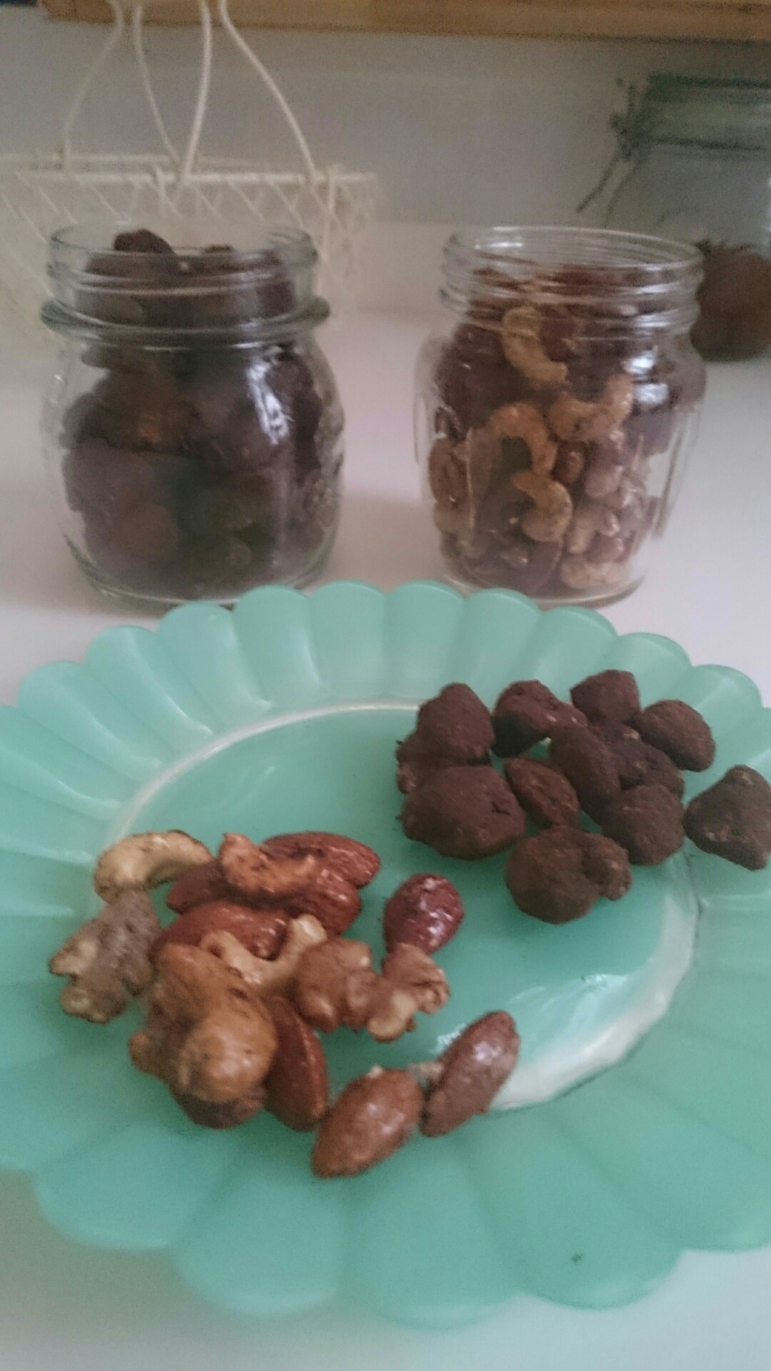今週のanan(お酒とおつまみ特集)に載っていたちょっとだけ甘いおつまみ。チョコレートがけナッツと、スパイシーナッツです。美味しすぎて久々の禁断メニュー…( ; ゜Д゜)。チョコレートのは、製菓用のカカオマスで作ったので大人のチョコという感じ。少しだけ甘くしましたが、カカオの風味が味わえます。シナモンパウダーも入れているのですが、チョコとシナモンってすごく合う!スパイスナッツは、カレーに入れている香辛料を色々ブレンドしてみました。パウダーをまぶしてからハチミツで和えています。これはお酒と一緒に食べたら止まらなくなりそうだなぁ?あっ、お酒がなくても止まらないか……(汗)。