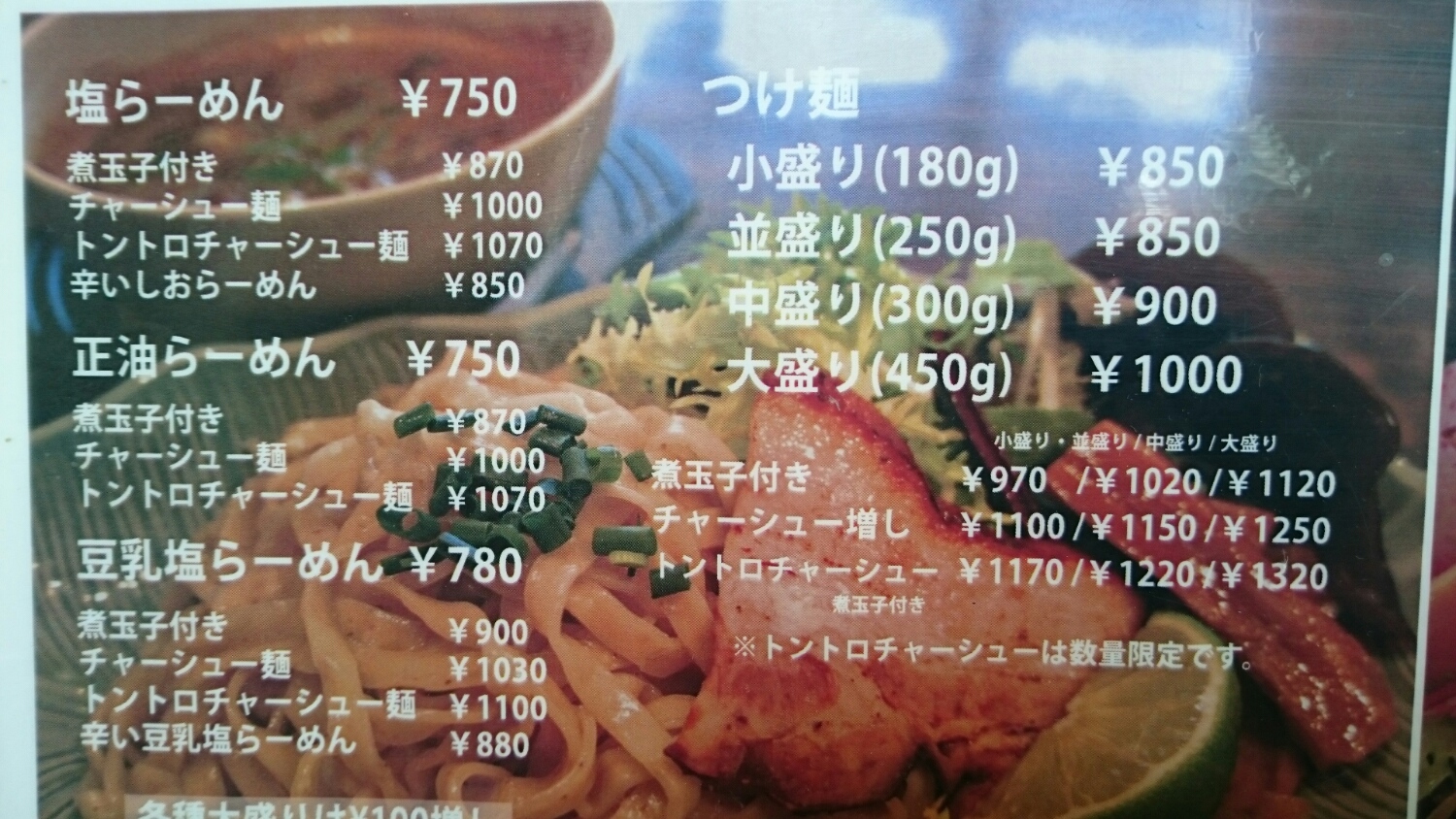 ↑ご参考にお店のメニュー(^o^)。「小盛り」がすでに世間の大盛り並み(°Д°)!「大盛り400グラム」って4人前では?!(○_○; )