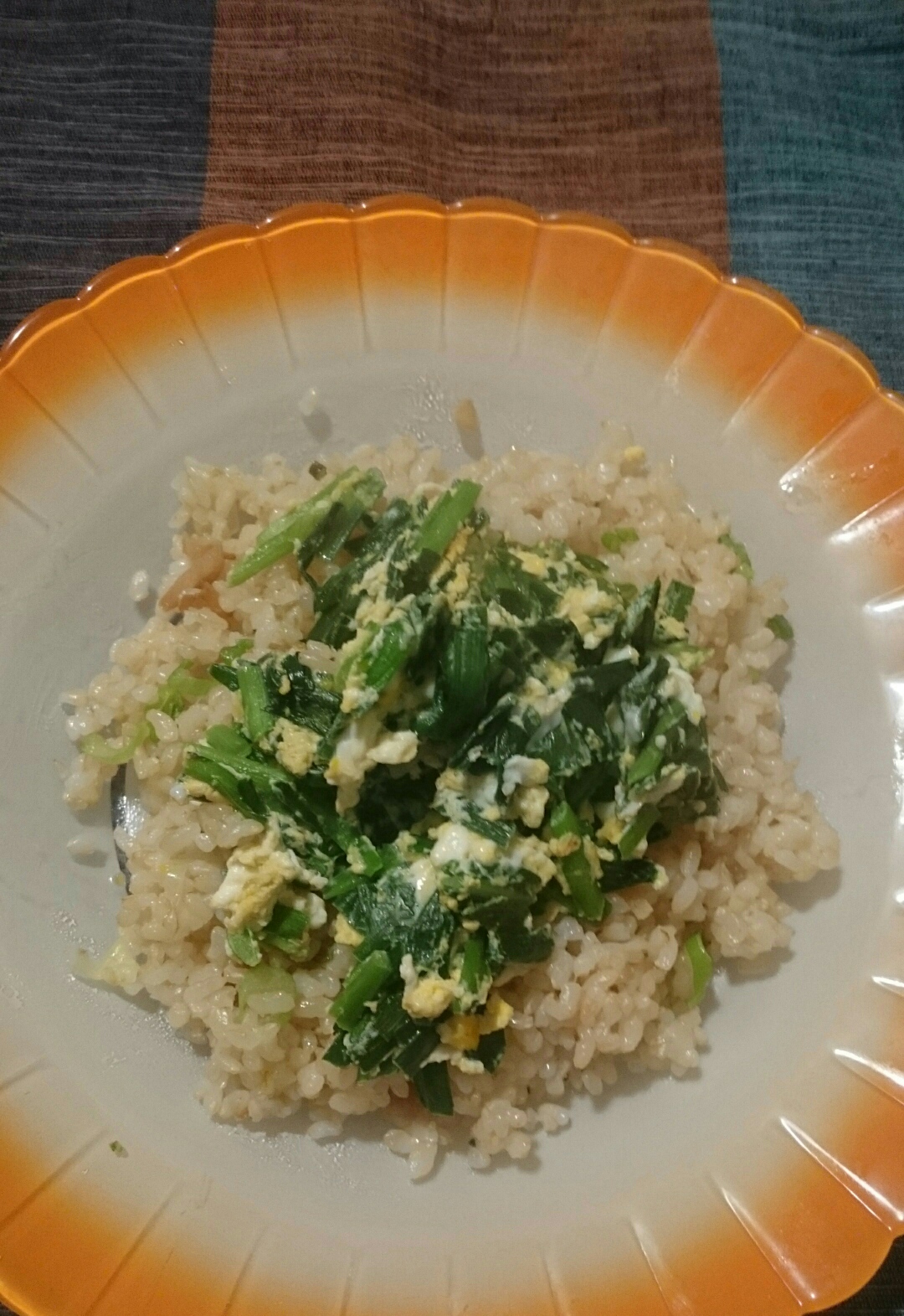 ニラ玉を乗せるのでご飯はシンプルにしましたが、もっと何か入れてもいいかな…ジャコ、えびとか。