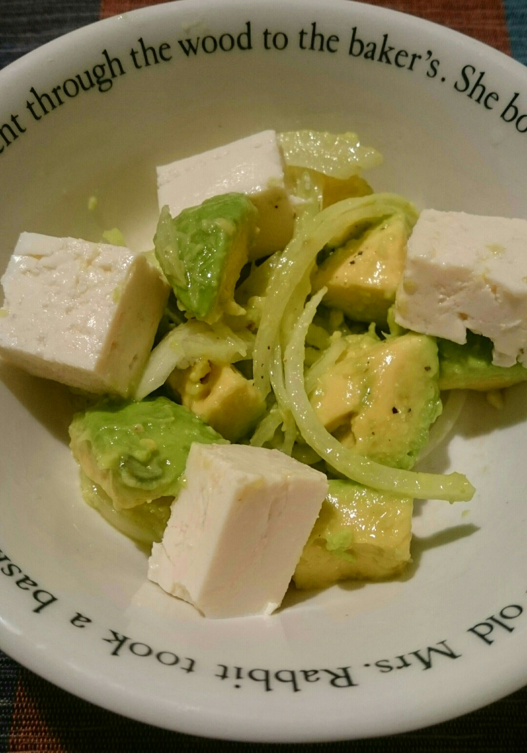 先日、京急デパートの地下で「沖縄の島豆腐とアボガドのサラダ」というのを見かけて美味しそうだったので作ってみました。島豆腐は手に入らなかったので普通の木綿豆腐です(^_^;)。他に何が入ってたか忘れてしまったので、違うものになってしまったかも……(  ̄▽ ̄)。