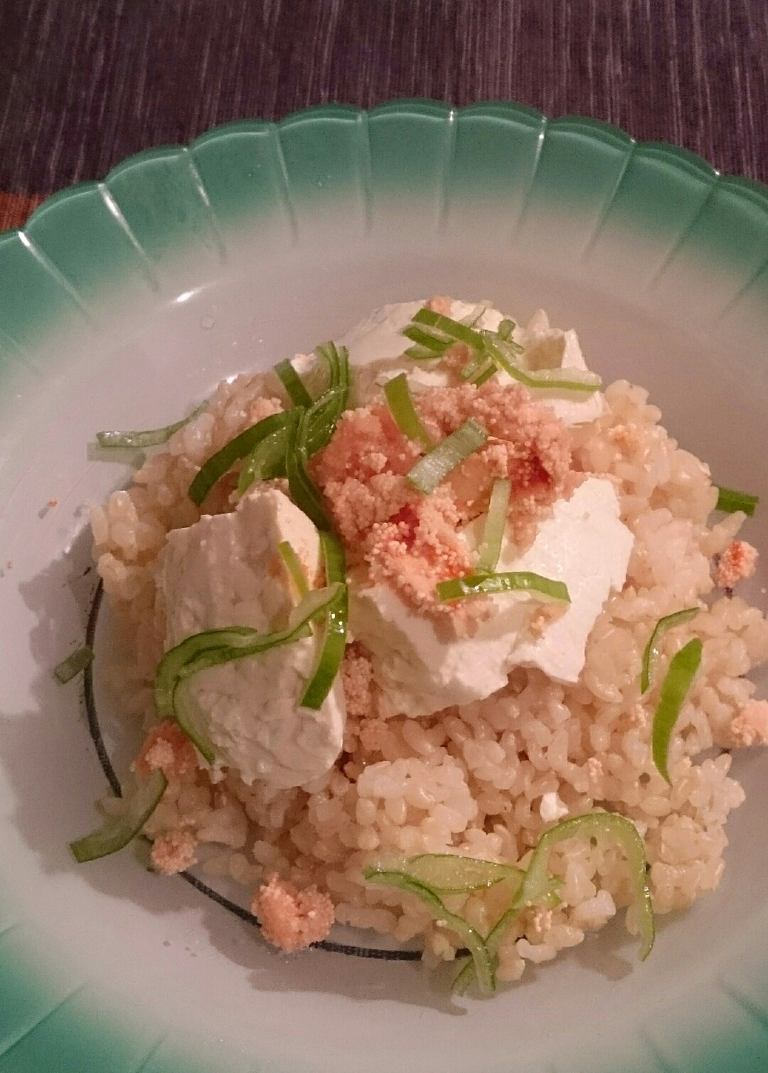 揚げじゃこ、かつお節をトッピングした豆腐のサラダが美味しいです★\(゜_゜)/★