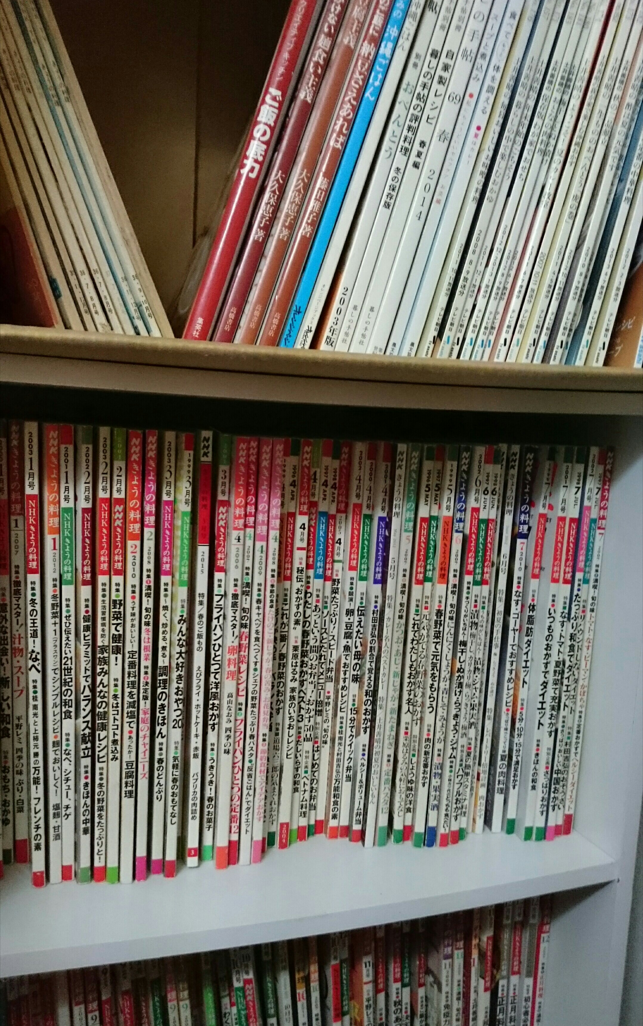 「きょうの料理」が好きで、古いのをオークションで買いました。何かにとりつかれたように落札し続けご覧の有り様(-_-)。どこに載っていたかレシピを探すのが一苦労(-_-)。