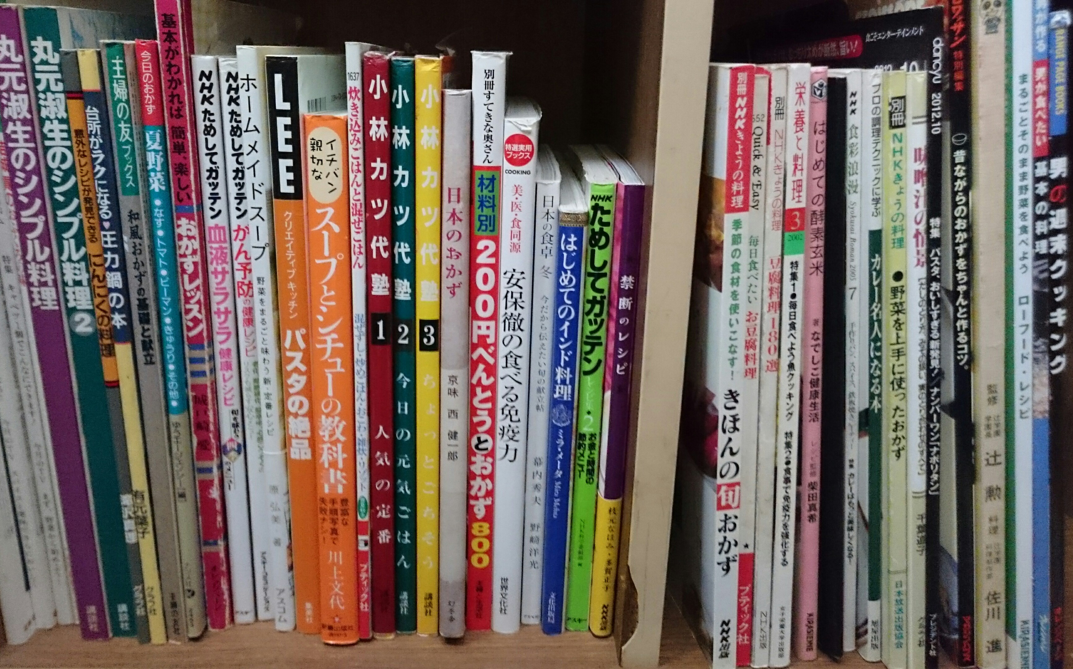 先日、物置スペースの片付けをしたのですが、いつの間にかたまってしまった料理本の置き場に困ってます(^_^;)。しかも、「あの料理もう一度作りたいけど何月号だったかな?」と思っても絶対見つかりません…これがなくなったらずいぶんスッキリしそうなのですが(^_^;)。クックパッドなら検索だけで出てくるし。