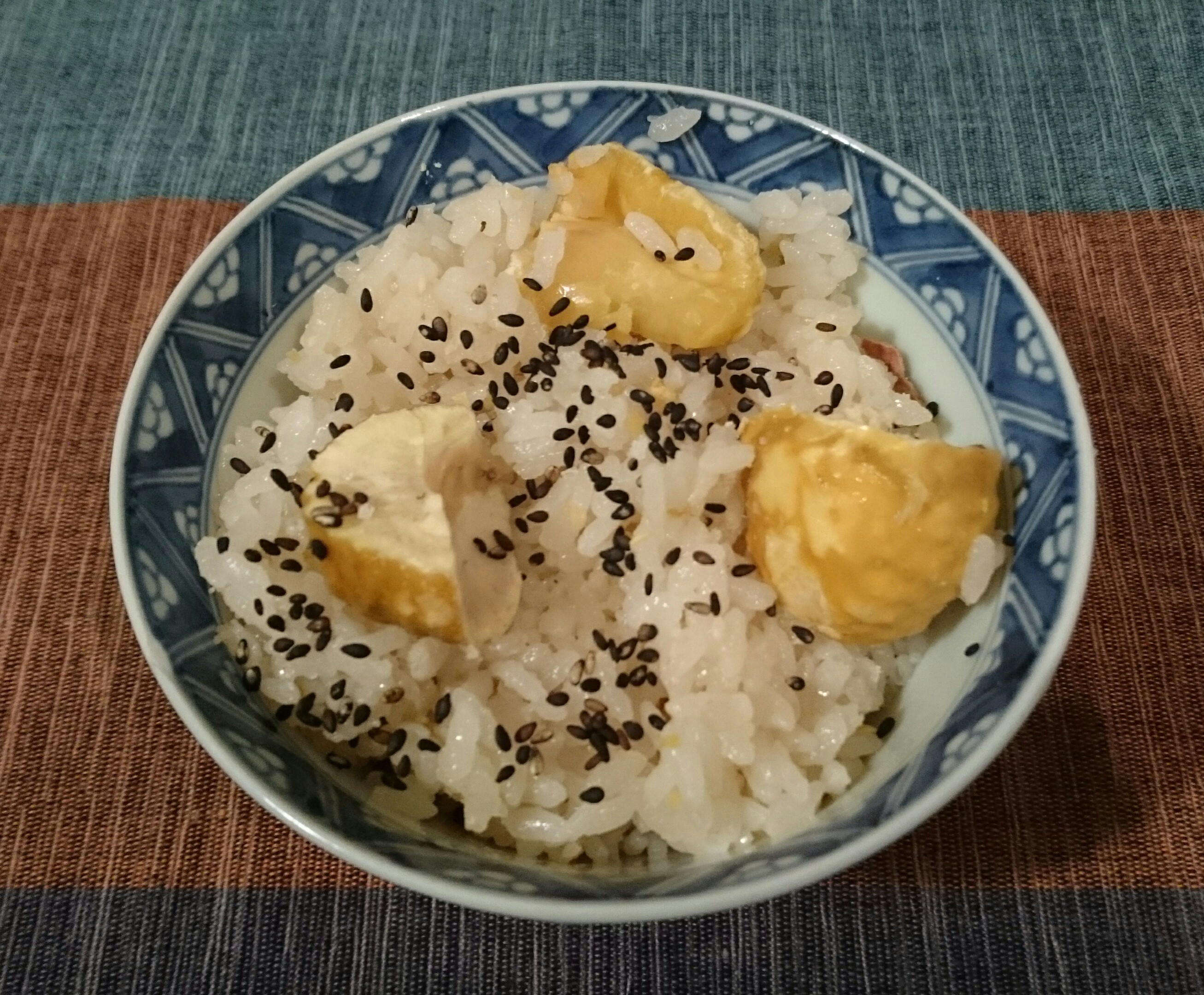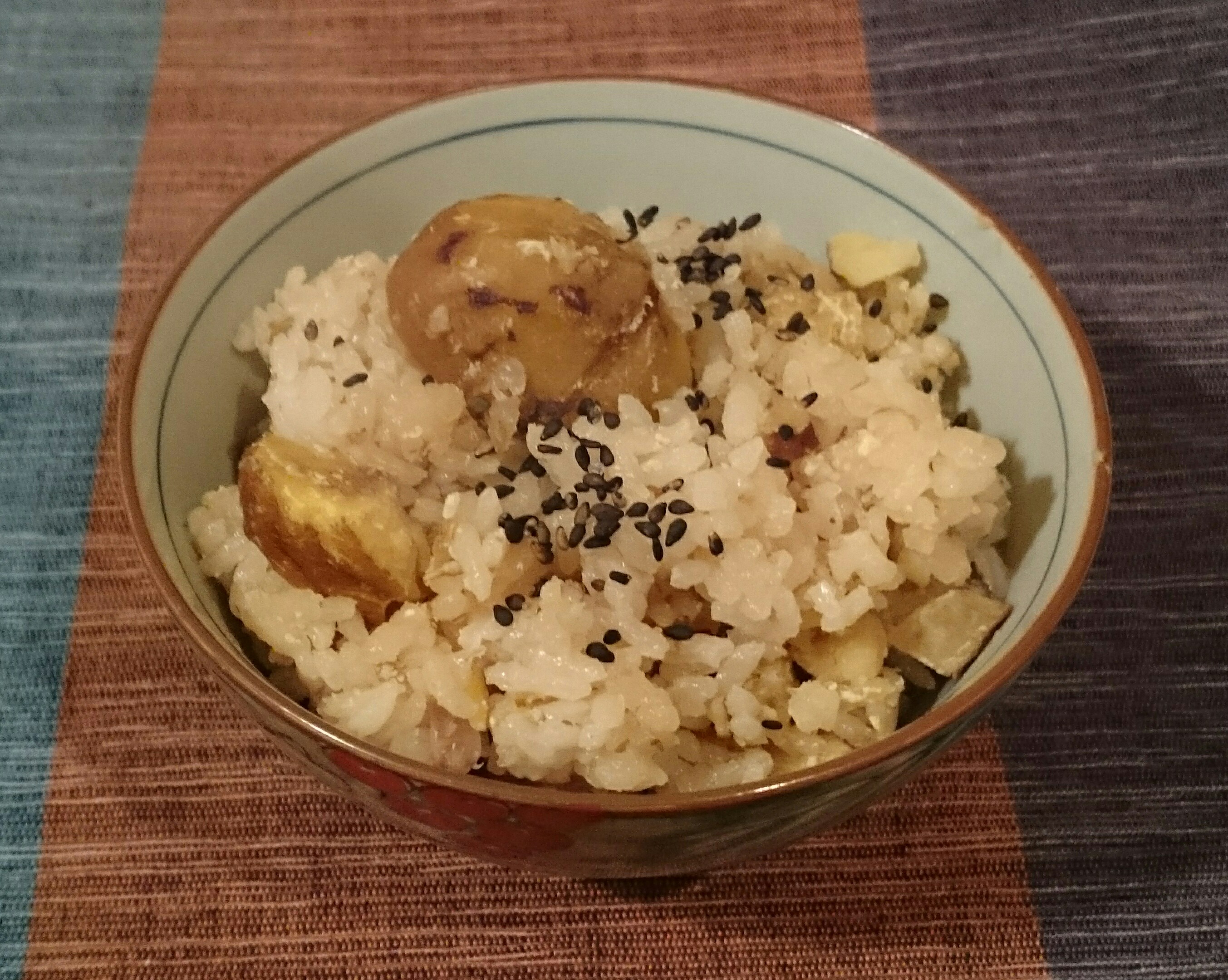 黒ごまと塩をフライパンで炒ってから振りかけると、香ばしくて最高!お茶碗2杯は軽くいける。あっ、でも私の茶碗は小さいですヨ(^_^;)。小豆を入れて栗おこわにしても美味しそうだなぁ♪