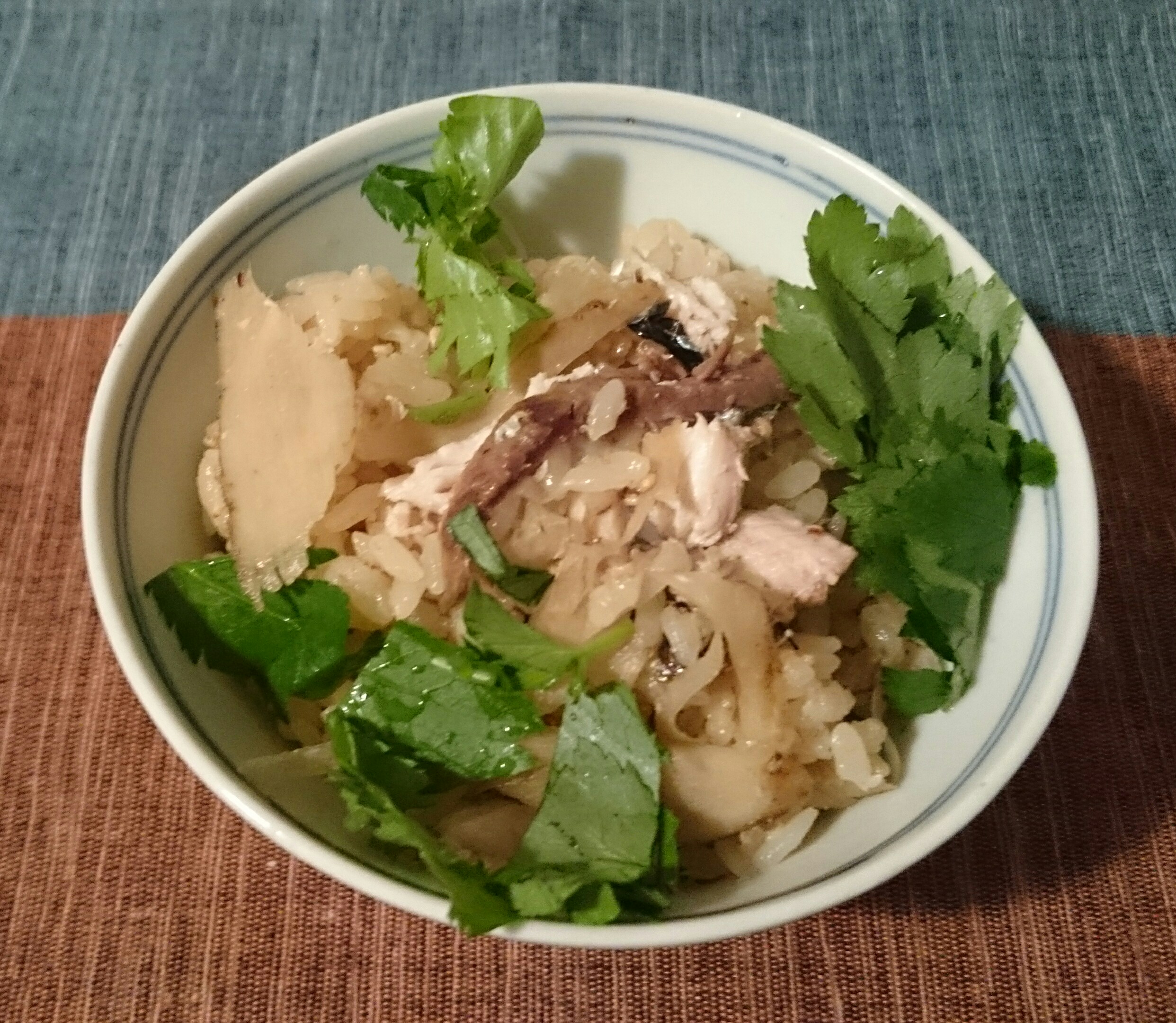 土居先生の「おかずのクッキング」10/11月号に載っていたレシピです。さんまを焼いてほぐしたものと、だし醤油で煮たささがきごぼう!これをご飯に混ぜて、三つ葉を散らしたら出来上がり(^o^)♪
