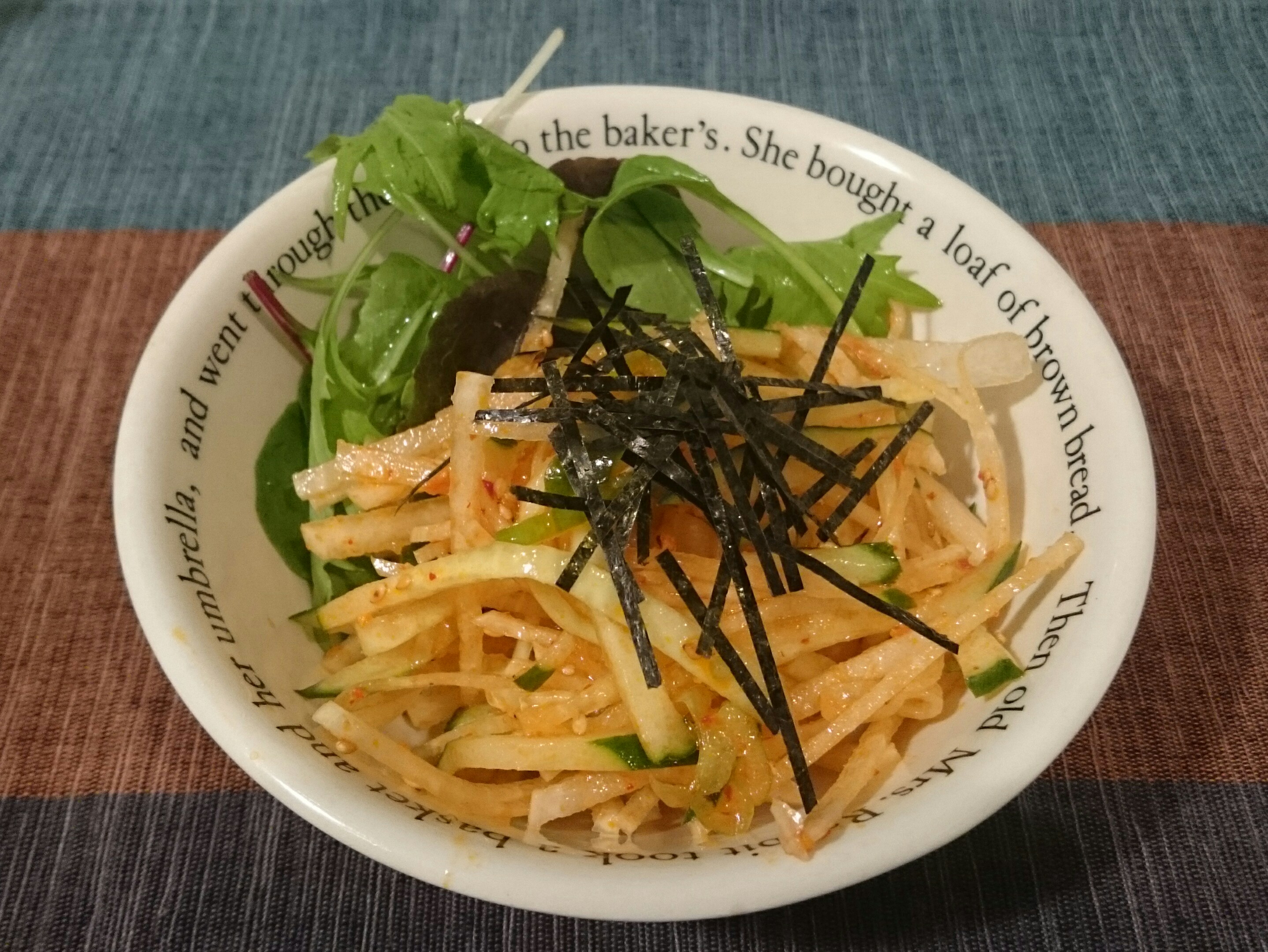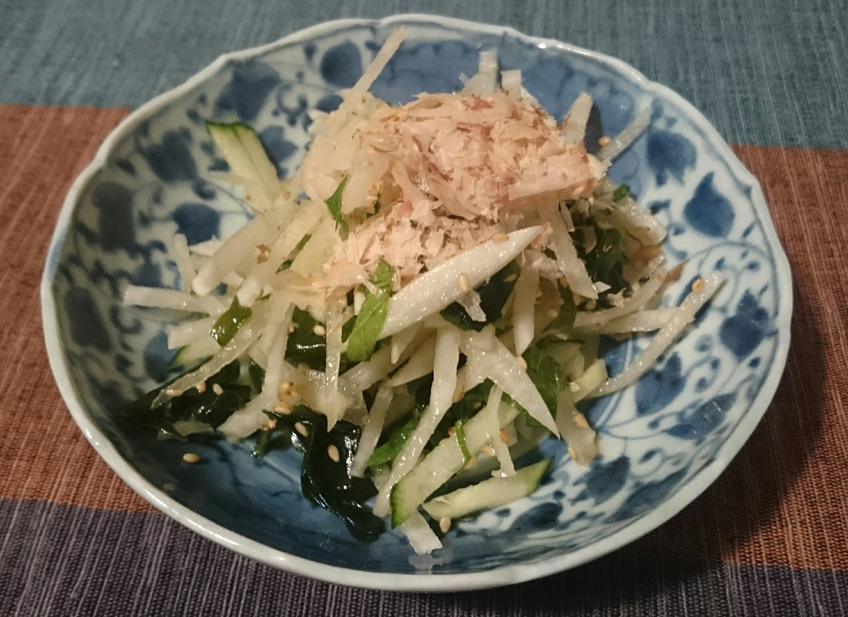 和風大根サラダ(°▽°)♪かつお節と海苔をかけた居酒屋風。揚げじゃこを乗せると、豪華バージョン。