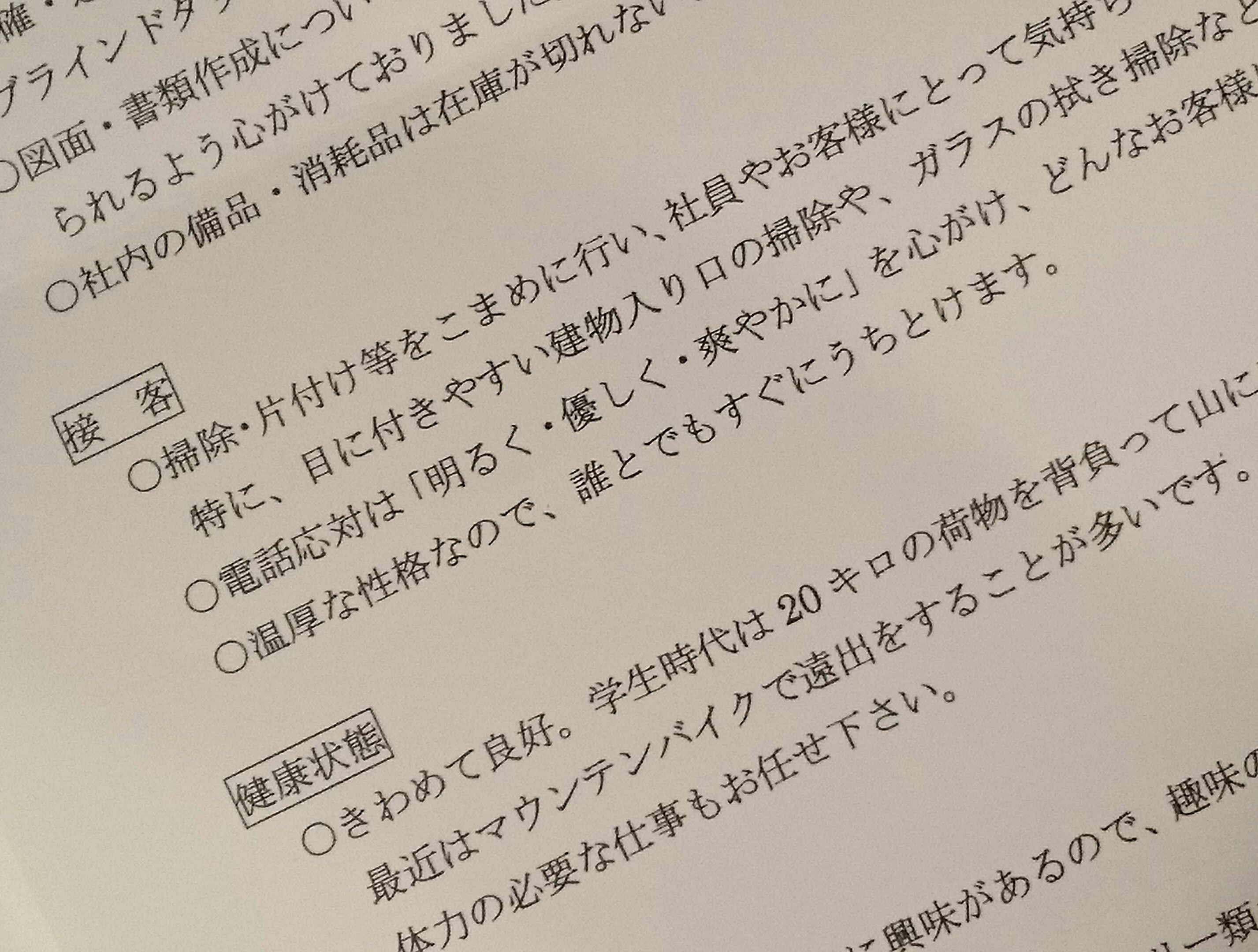 「書類作成は正確迅速を心がけ、急ぎの要望にもすぐに応えられます‼」とか、書いてある……(汗)。いま書きながら思い出しましたが、これは、ハローワークの職員から「ちゃんと売り込んでアピールしないとダメ」と散々お説教されて作った職務経歴書なのです。しかしそれでも採用に至らないことが多かった。そんな中、私を拾ってくれたS姐さん(°▽°)。少なくとも迷惑だけは掛けないようにしようと思いながら、ミスばかりで何度落雷に遭ったことか……想いとは裏腹に、ずいぶん迷惑を掛けた……S姐さんには足を向けて寝られない私です(;∀;)。
