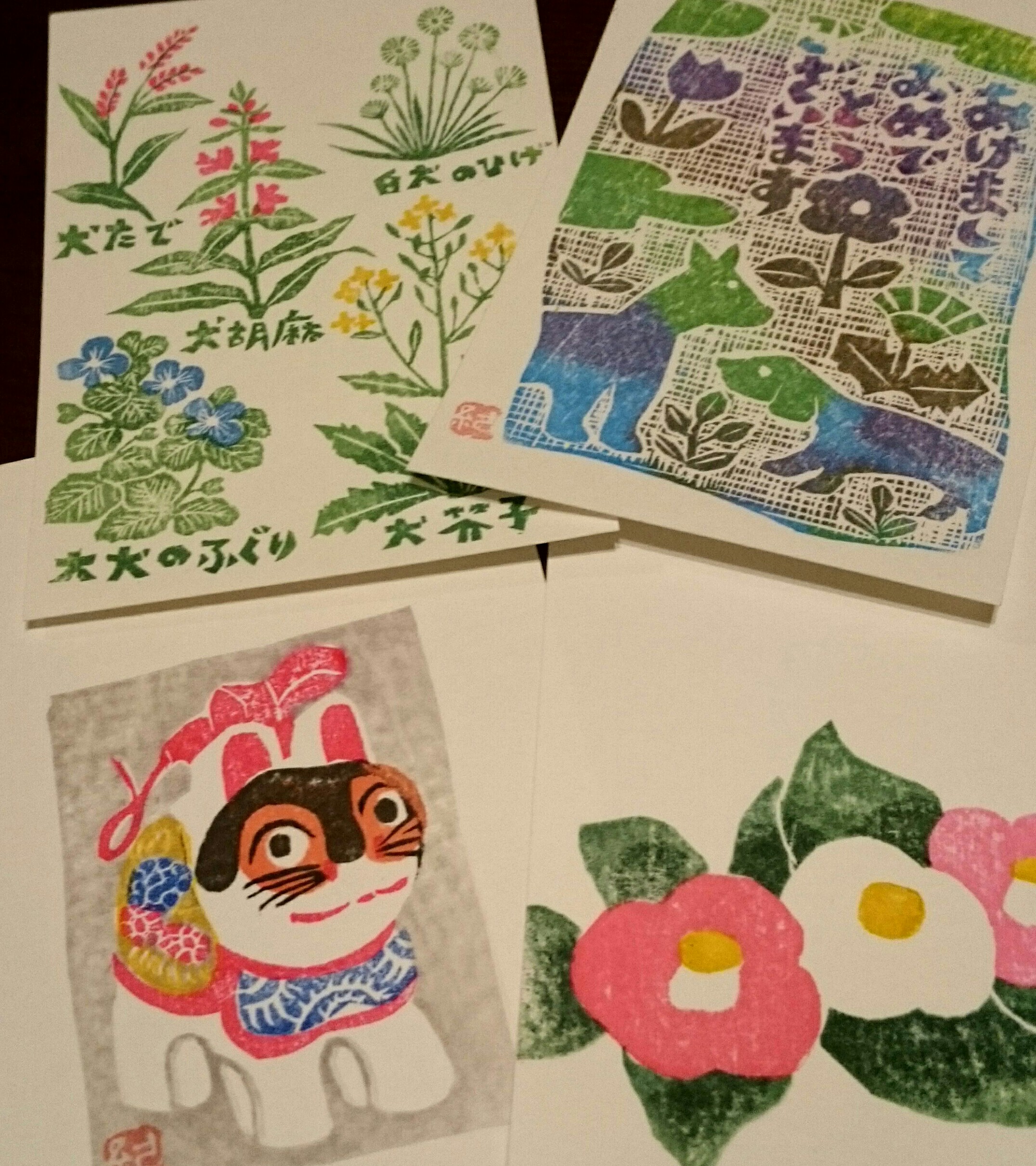 写真は、鎌倉の古本屋さんで売っている版画の年賀状。可愛くて手元に置いておきたいくらい