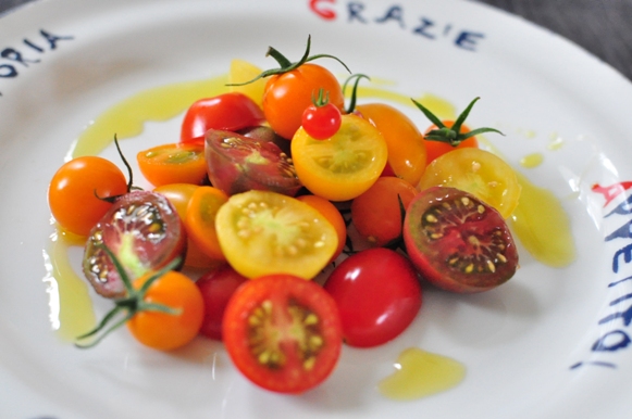 トッピングはうちで採れたマイクロトマト。