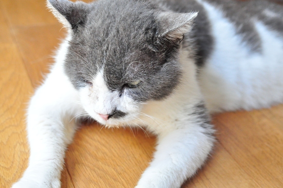 そんなこんなで落ち着かない状態が続いていましたが、経過は順調、徐々に元気になっています。神経質そうに怒ったりすることもなくなり、とろんとした顔で寝ています^^