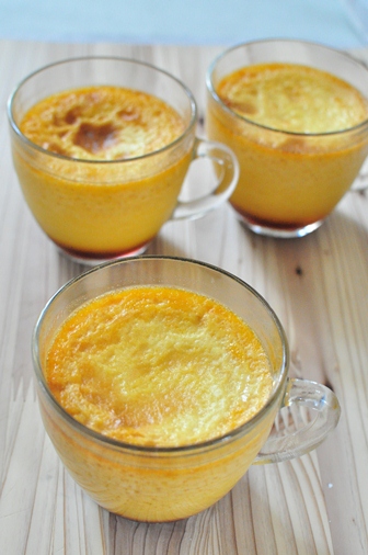 それにやっぱり手作りが一番おいしいので、マーロウのプリンをまねて作ってみました。こちらも200cc容器5個分くらいは作れたのでコスト的にもお得です。肝心の味は、初めて作ったわりにはクリーミーでとてもおいしい出来上がりになりました。かぼちゃを裏ごしし、プリン液も濾してから入れたので手間暇をかけただけのことはあります。しかし指定温度で蒸し焼きにしたにも拘わらず周囲に少しスが入ってしまいました・・・でも食べてみるとそれほど気になるものではなく、なめらかな舌触りがいきていましたので、両親にも喜んでもらえたようです。